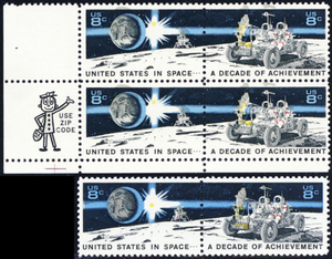 1435a, MNH 8¢ Black & Yellow Colors Shifted Up Zip Block Error - Stuart Katz