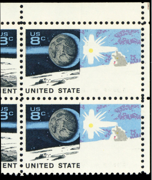 1435a, MNH 8¢ Space RARE PB Strip Partial Color Omitted Freak Error Stuart Katz