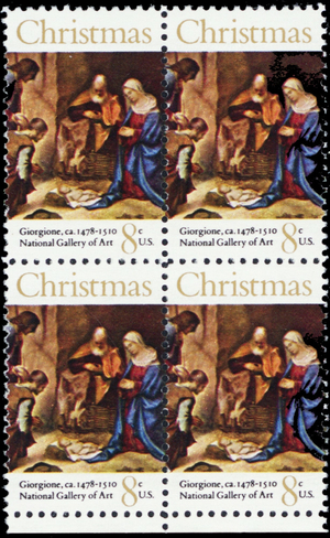 1444, Mint NH 8¢ Christmas Gold Color Shift ERROR Zip Block - Stuart Katz