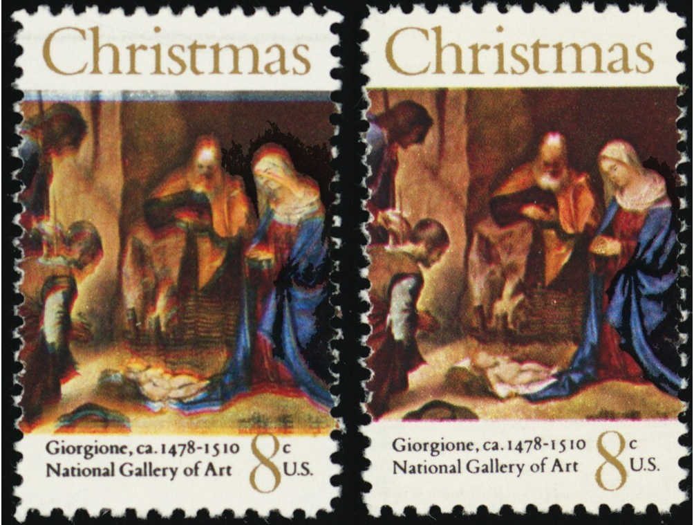 1444, Mint NH 8¢ Color Shift ERROR Christmas Stamp - Stuart Katz