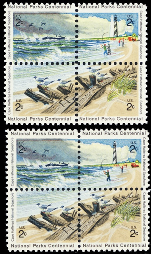 1451a, MNH 2¢ National Parks Color Shift ERROR Block of 4 Stamps - Stuart Katz