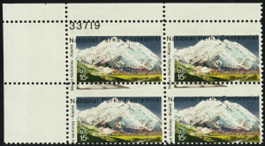 1454, 15¢ Dramatic Color Shift Error Plate Block of Four Mint NH - Stuart Katz