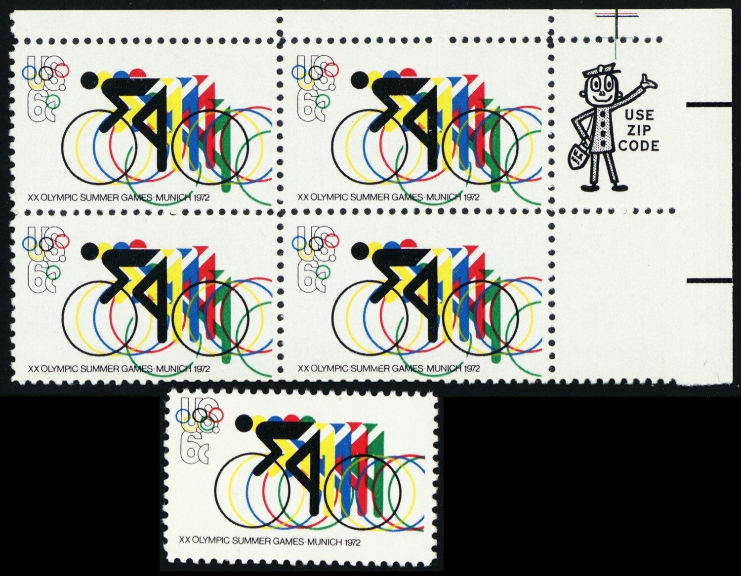 1460, Mint NH 6¢ - Very Dramatic Green Color Shift Error Zip Block - Stuart Katz