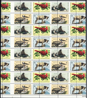 Shows a full gutter between the stamps on the first column.