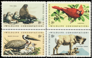 1467a, MNH 8¢ Wildlife Large Color Shift Freak Error Block of 4 - Stuart Katz