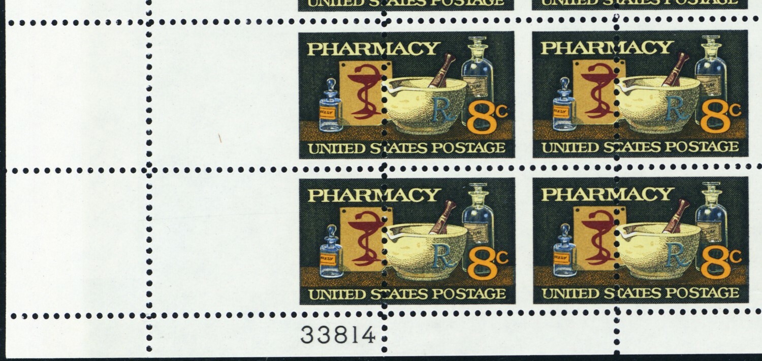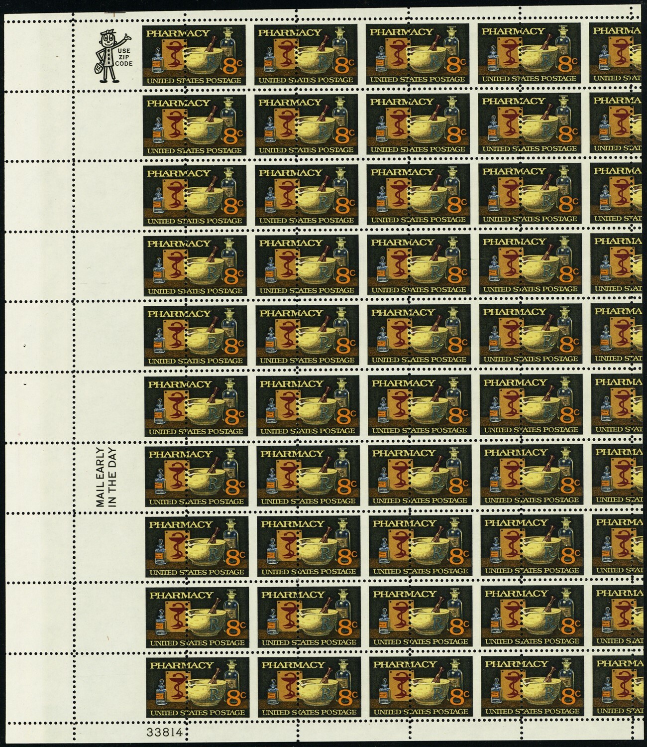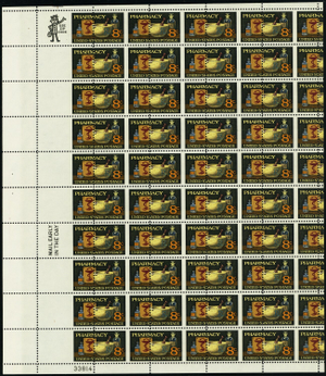 1473, Misperforated Error Pharmacy Sheet of 50 8¢ Stamps - Stuart Katz