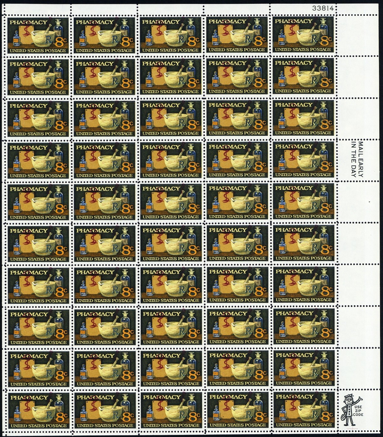 1473, MNH 8¢ Large Magenta Color Shift Error Freak Sheet of 50 - Stuart Katz