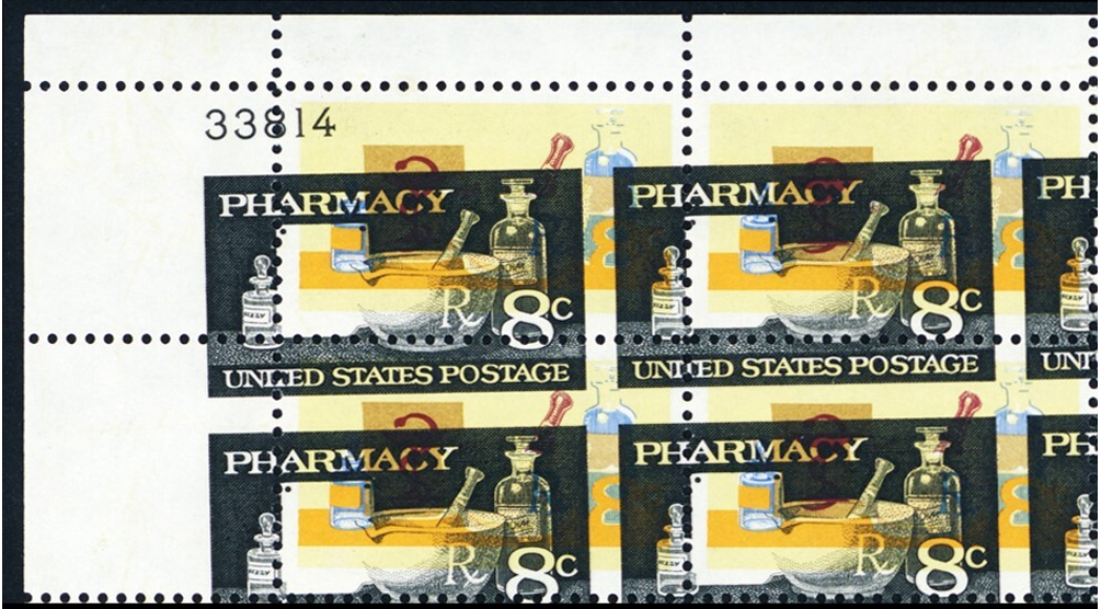 1473, MNH 8¢ - Spectacular Color Shift Error Plate Block - Stuart Katz