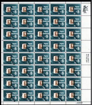 1474, Mint NH 8¢ Color Shift Freak Error Sheet of 40 - Stuart Katz