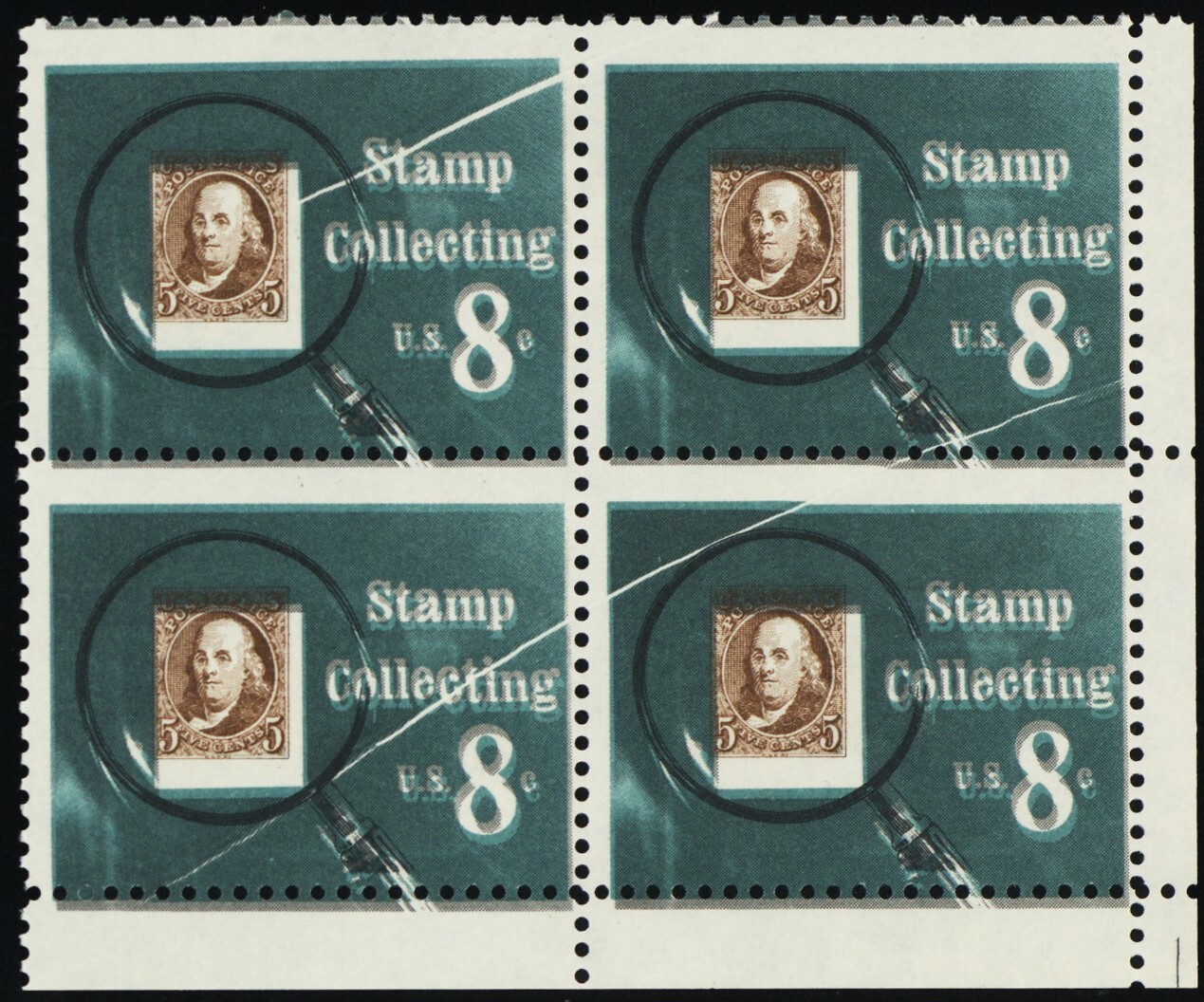 1474, Mint NH 8¢ Pre Print Paper Fold & Color Shift Error Block - Stuart Katz