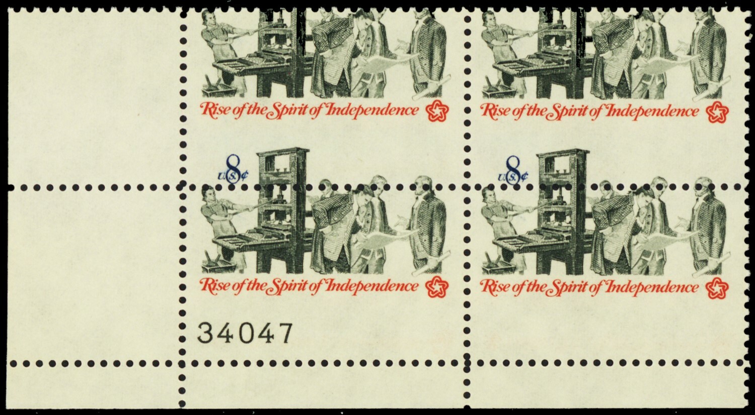 1476, MNH 8¢ Scarce Misperforated Error Plate Block PL# Captured - Stuart Katz
