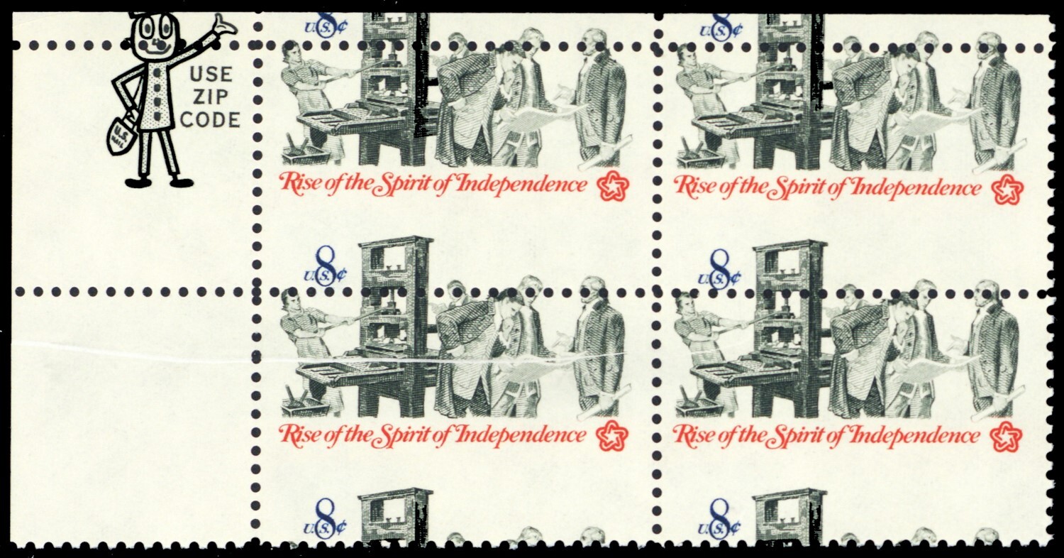 1476, MNH Misperf Shift And Pre Print Paper Fold Freak Error Zip Blk Stuart Katz