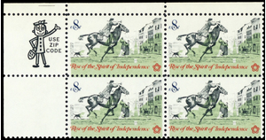 1478, Green Color Shift Freak Error Zip Block MNH 8¢ With Normal * Stuart Katz
