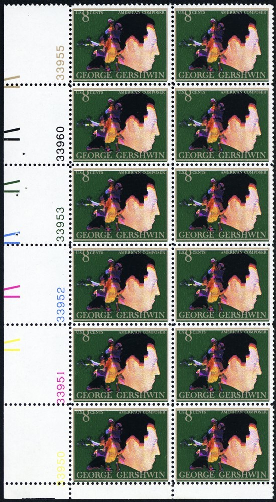 1484, Large Color Shift ERROR Plate Block of 12 8¢ Gershwin Stamps - Stuart Katz