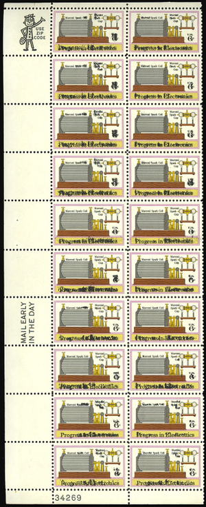 1500 Ink Smear ERROR Block of 20 - 6¢ Electronics - Mint NH - Stuart Katz