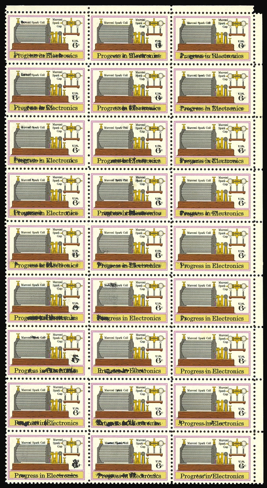 1500 Ink Smear ERROR Block of 30 - 6¢ Electronics - Mint NH - Stuart Katz