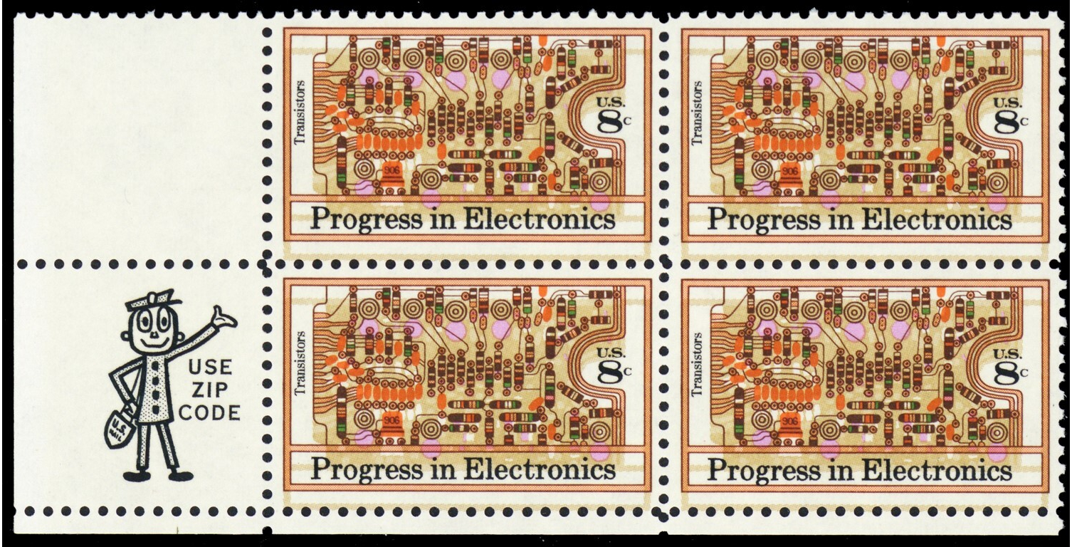 1501, Mint NH 8¢ Color Shift Freak Error Zip Block * Stuart Katz