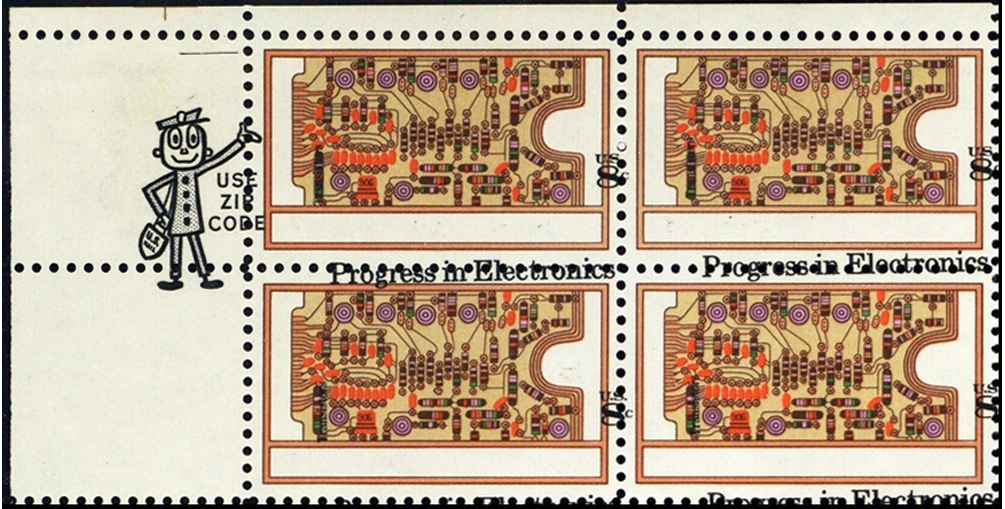 1501, MNH 8¢ - Spectacular Black Color Shift Error Zip Block - Stuart Katz