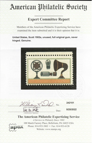 Due to the high cost of obtaining certificates we will only refund the cost of the stamp and not the cost of the certificate for stamps that sell for less than $250 that come back with a negative certificate. Stamps that sell for above $250 will receive a full refund for both the price of the stamp and cost of the certificate if it should come back not as described. For U.S. stamps only certificates from either APS, PSE or from the Philatelic Foundation are accepted, however "graded" certificates or "encased" items are not accepted.