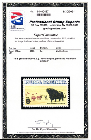1504a, Mint VF NH 8¢ Green & Red Brown Omitted Error PSE Cert - Stuart Katz