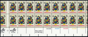 1508, MNH 8¢ Freaky Miscut Error PL# Block of 20 Stamps * Stuart Katz