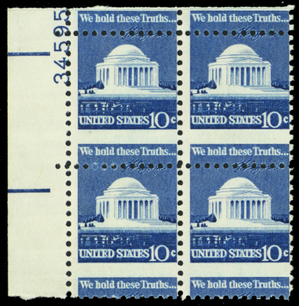 1510, Mint NH 10¢ Large Perf Shift Plate Block of Four WoW - Stuart Katz