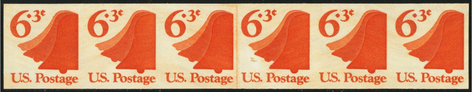 1518b, MNH 6.3¢ Horizontal Imperforate Line Strip of Six Error - Stuart Katz