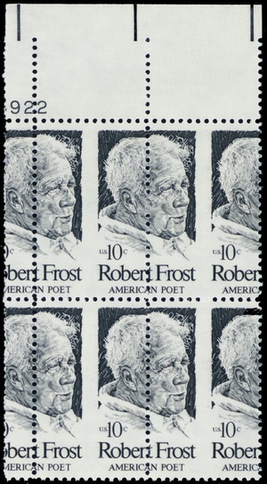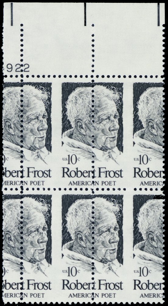 1526, 10¢ Large Misperforation Error Plate Block Robert Frost - Stuart Katz