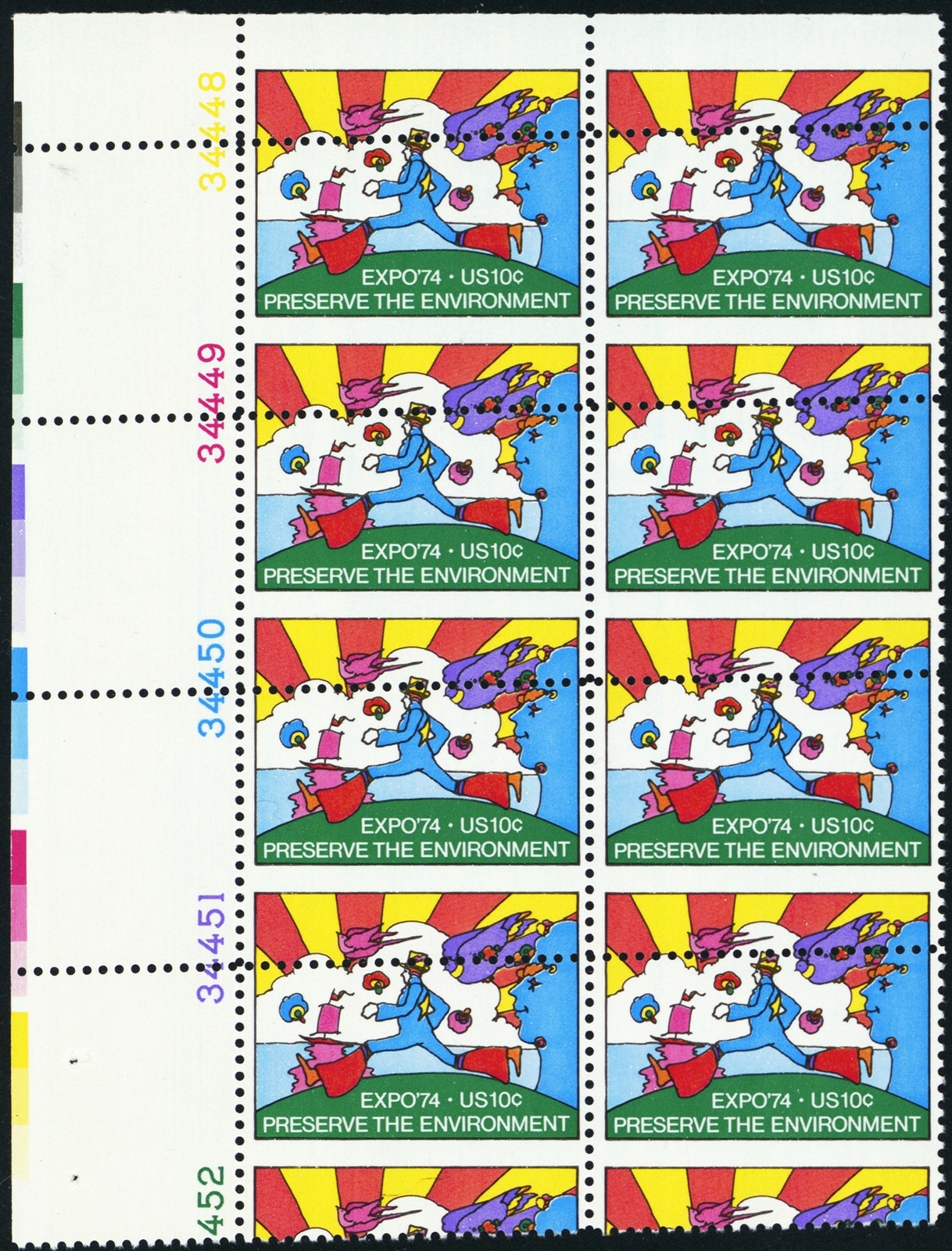 1527, MNH 10¢ Block of Eight Diagonal Misperfed Stamps With PL# * Stuart Katz