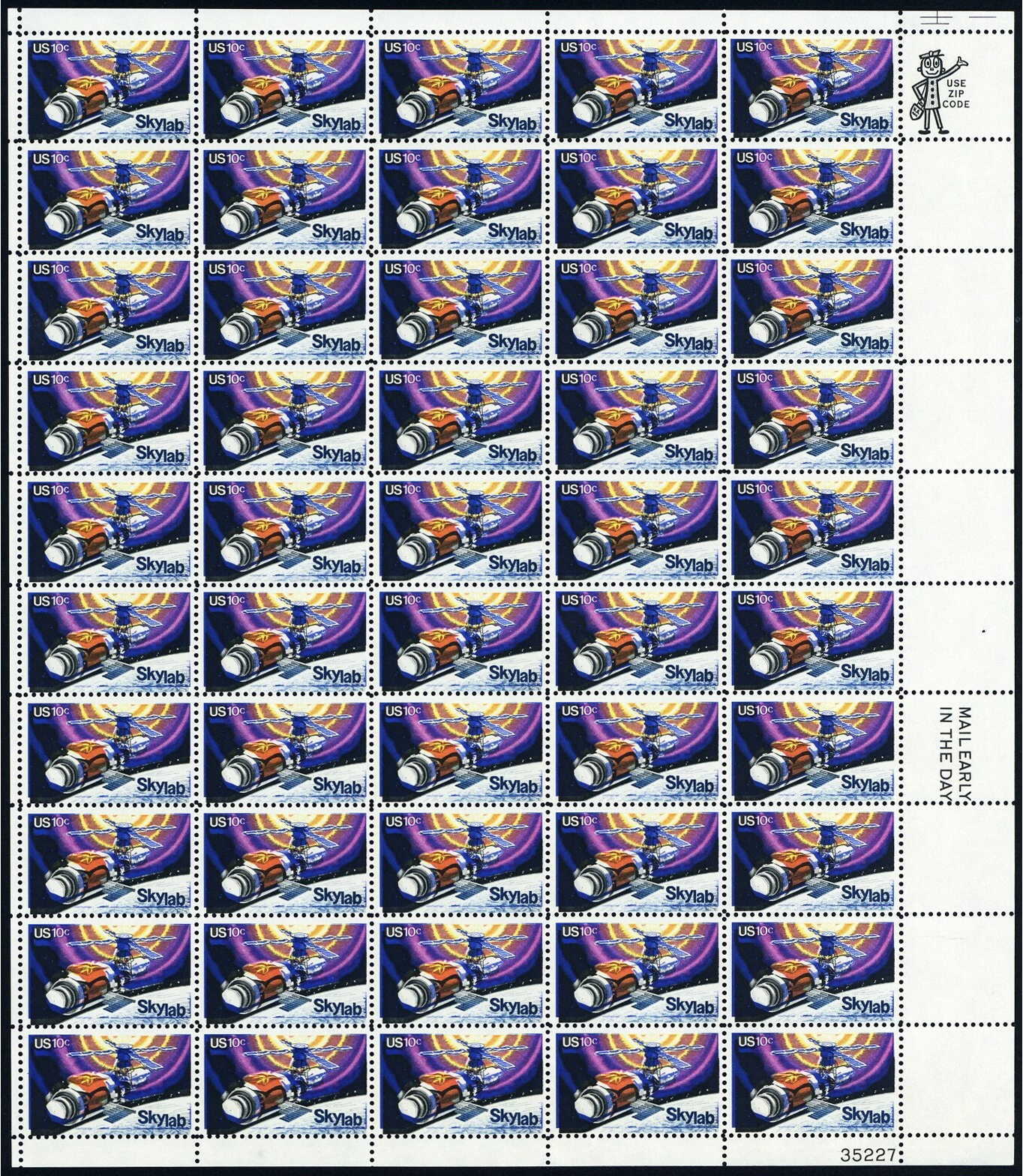 1529, MNH 10¢ Skylab Black Color Shifted Down Error Full Sheet - Stuart Katz