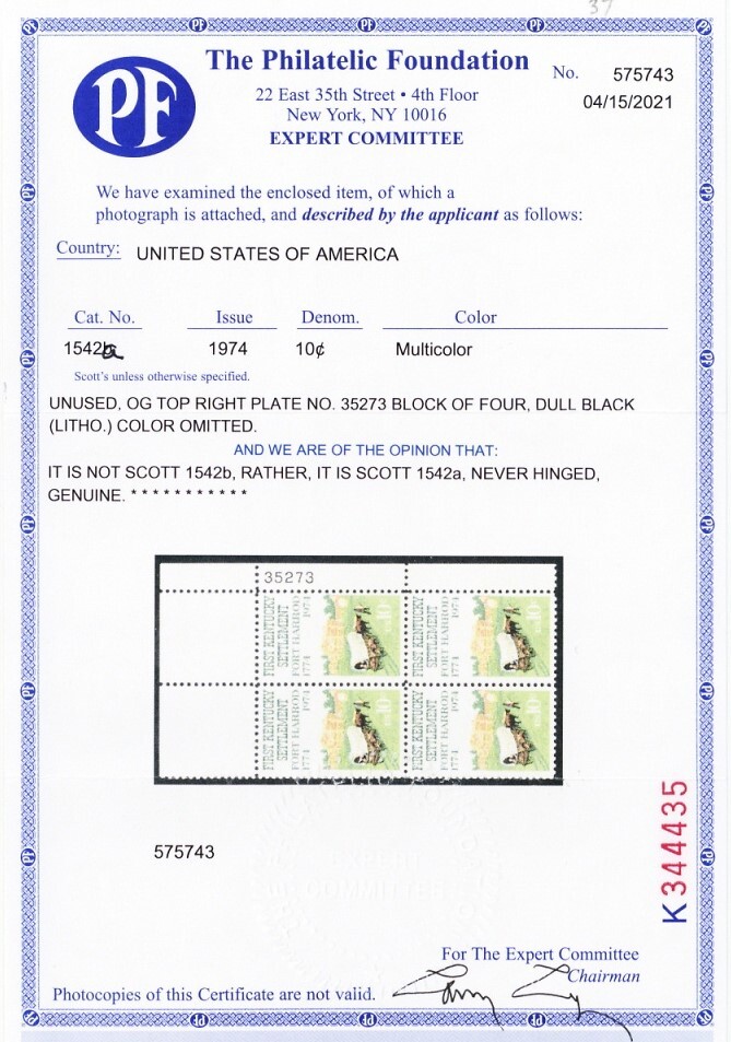 1542a, MNH PB - Dull Black Color Omitted APS & PFC Certificates - Stuart Katz