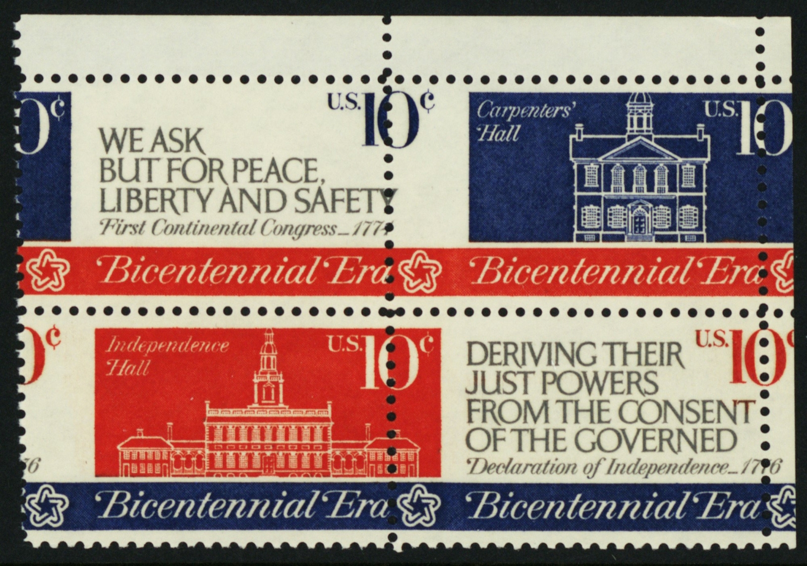 1546a, Misperf Shift Freak Error Block Mint NH 10¢ Bicentennial - Stuart Katz