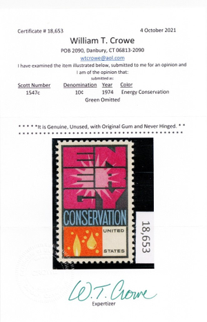1547c, Mint NH 10¢ Green Color Omitted Error Crowe Certificate * Stuart Katz