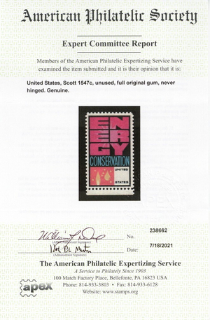 Due to the high cost of obtaining certificates we will only refund the cost of the stamp and not the cost of the certificate for stamps that sell for less than $250 that come back with a negative certificate. Stamps that sell for above $250 will receive a full refund for both the price of the stamp and cost of the certificate if it should come back not as described. For U.S. stamps only certificates from either APS, PSE or from the Philatelic Foundation are accepted, however "graded" certificates or "encased" items are not accepted.