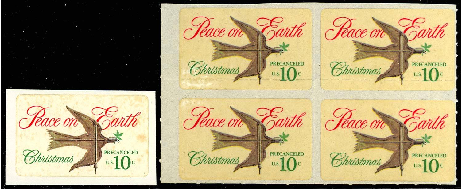 1552, Mint 10c Dove - VERY RARE DIE CUTTING SHIFTED BLOCK OF FOUR - Stuart Katz