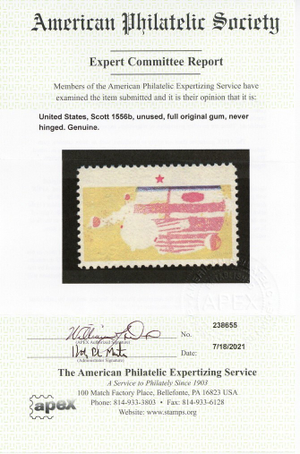Due to the high cost of obtaining certificates we will only refund the cost of the stamp and not the cost of the certificate for stamps that sell for less than $250 that come back with a negative certificate. Stamps that sell for above $250 will receive a full refund for both the price of the stamp and cost of the certificate if it should come back not as described. For U.S. stamps only certificates from either APS, PSE or from the Philatelic Foundation are accepted, however "graded" certificates or "encased" items are not accepted.