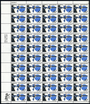 1557, 10¢ Floating Red Star Color Shift Error Space Sheet - Stuart Katz