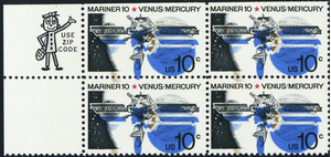 1557, Color Shift Freak Error Zip Block Mint NH 10¢ SPACE STAMPS * Stuart Katz