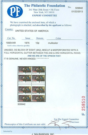 1560b, Full Horiz Gutter Between Stamps & Color Missing PFC Cert - Stuart Katz