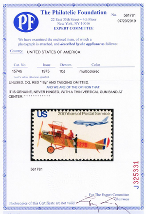 Due to the high cost of obtaining certificates we will only refund the cost of the stamp and not the cost of the certificate for stamps that sell for less than $250 that come back with a negative certificate. Stamps that sell for above $250 will receive a full refund for both the price of the stamp and cost of the certificate if it should come back not as described. For U.S. stamps only certificates from either APS, PSE or from the Philatelic Foundation are accepted, however "graded" certificates or "encased" items are not accepted.