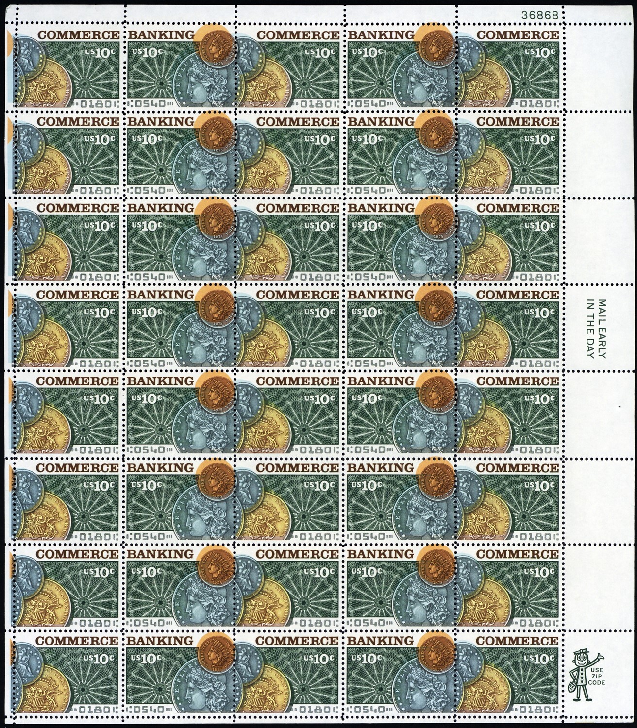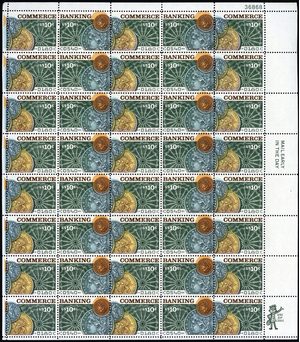 1578a, Mint NH 10¢ - Full Color Shift Error Sheet - Banking - Stuart Katz