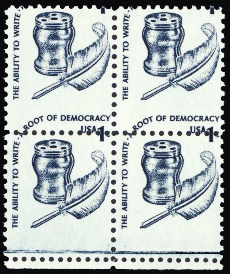 1581, Mint NH 1¢ Misperfed Error Block of Four Stamps - Stuart Katz