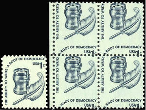 1581, RARE 1¢ Misperforation Error Block of Four - Stuart Katz Description: Shown with normal stamp (Not included)