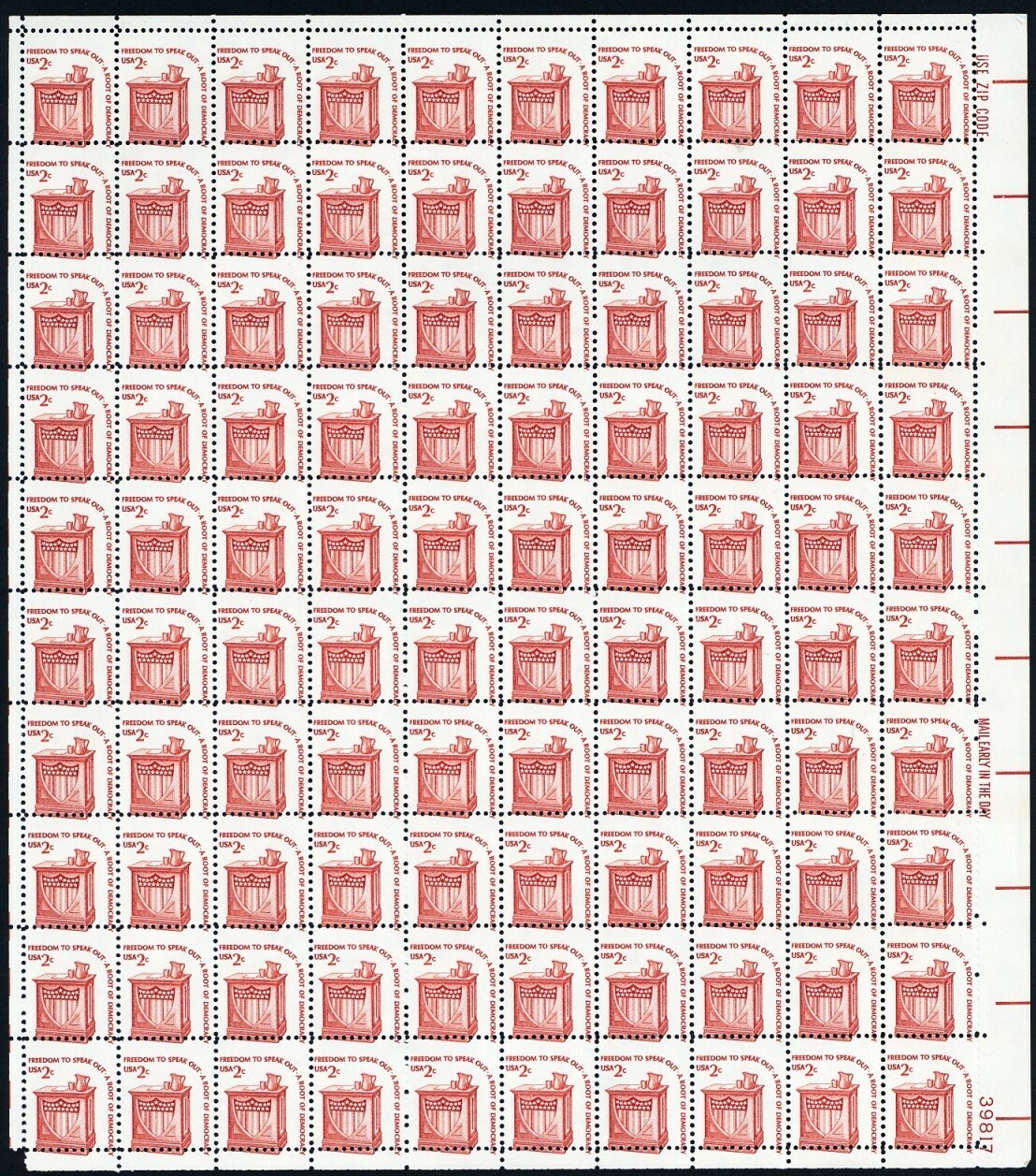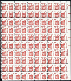 1582, MNH 2¢ Misperfed Freak EFO Error Sheet of 100 Stamps - Stuart Katz
