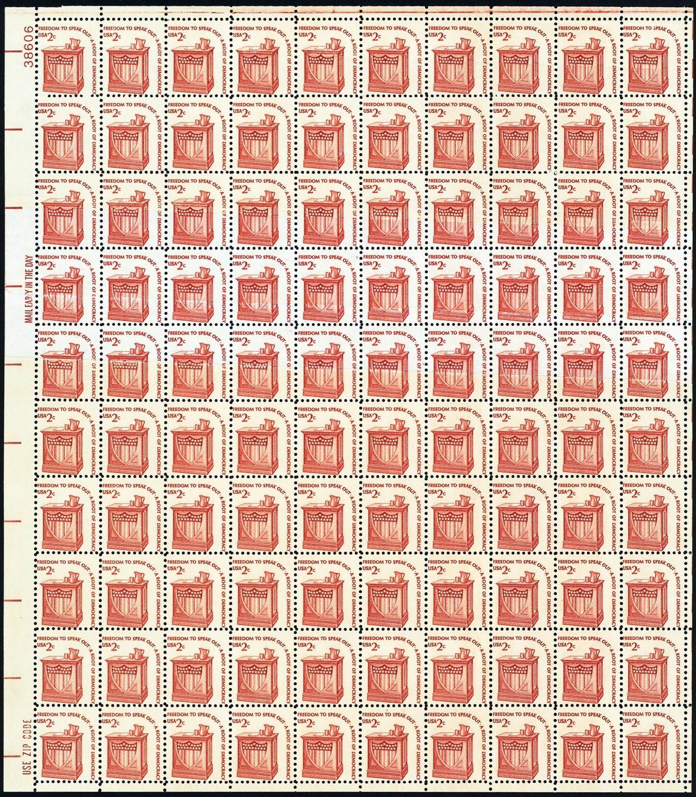 1582c, MNH 2¢ Tagging Omitted And Double Paper Error Sheet CV $750+ Stuart Katz