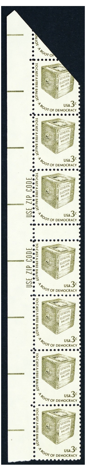 1584, MNH 3¢ Very RARE Vertical Gutter Error Pair In Strip of 7 - Stuart Katz