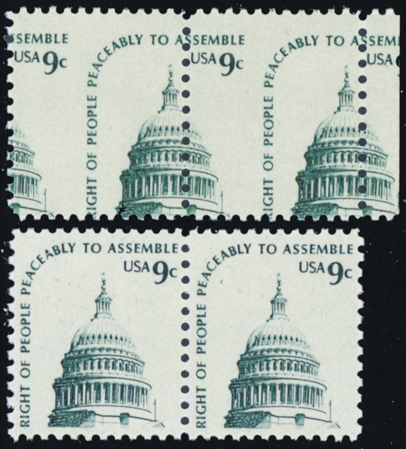 1591, Mint NH 9¢ - Dramatic Misperf Error Margin Pair W/Normal * Stuart Katz