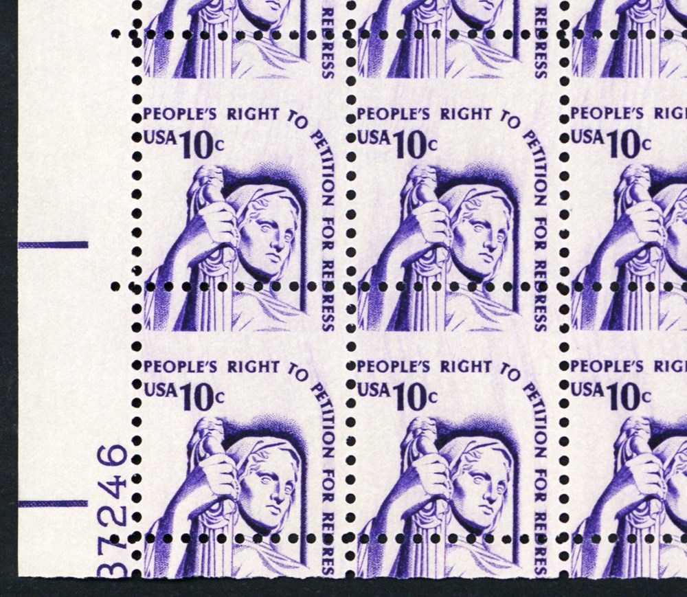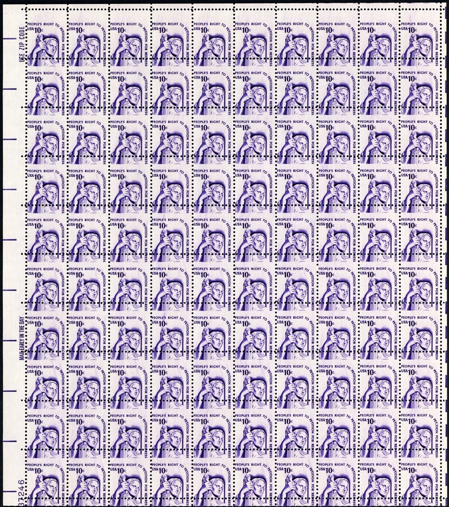 1592, RARE ERROR Sheet of 100 10¢ Right to Petition Stamps Mint NH - Stuart Katz