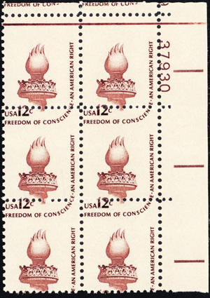 1594, Mint NH 12¢ Perf Shift Error Plate Block of Six Stamps -- Stuart Katz