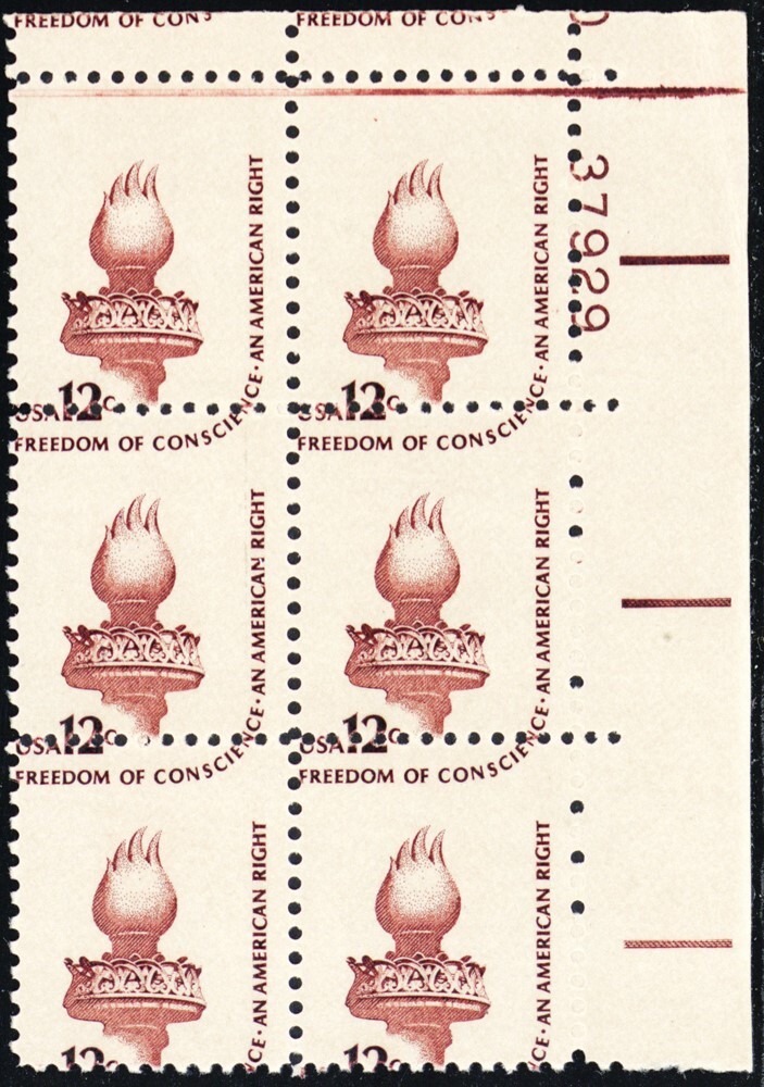 1594, Mint NH 12¢ Perf Shift Error Plate Block of Six Stamps - Stuart Katz